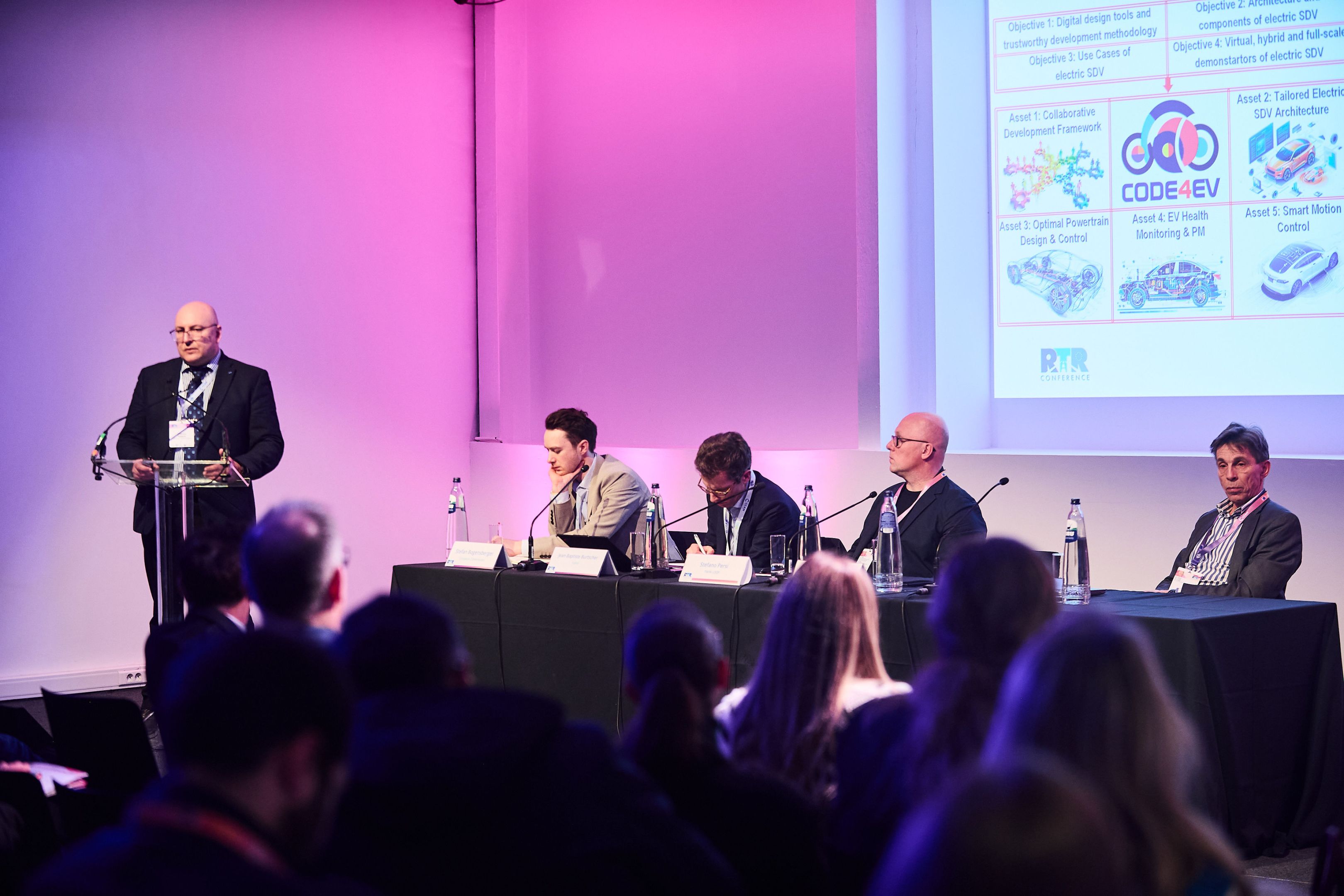 At RTR2026, CODE4EV took part in the session dedicated to software-defined vehicles (SDVs) – one of the most transformative topics in mobility today. The project shared the stage with Twin-Loop and HAL4SDV, bringing together two complementary perspectives connected through two major European funding programmes: Horizon Europe (2Zero) and Chips JU.